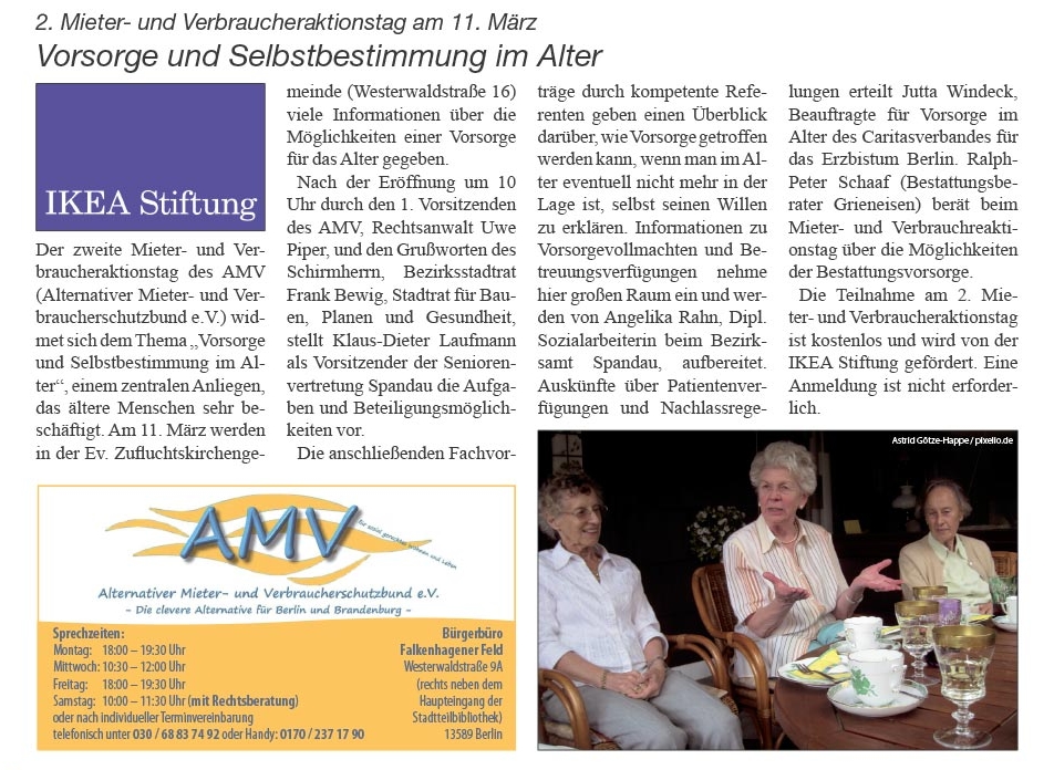 Spandauer Volksblatt am 03.03.2017 – Selbstbestimmung und Vorsorge im Alter: Aktionstag des Verbraucherschutzbundes
